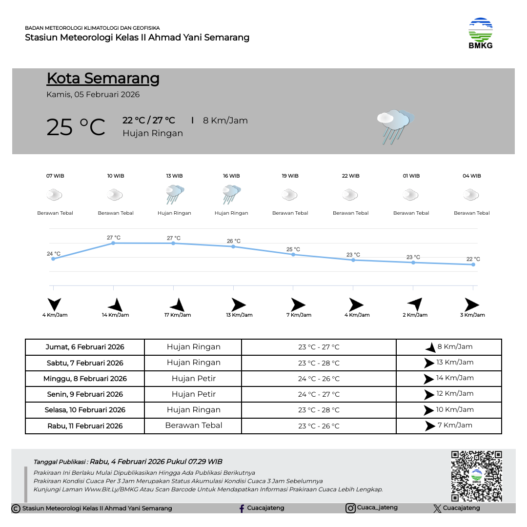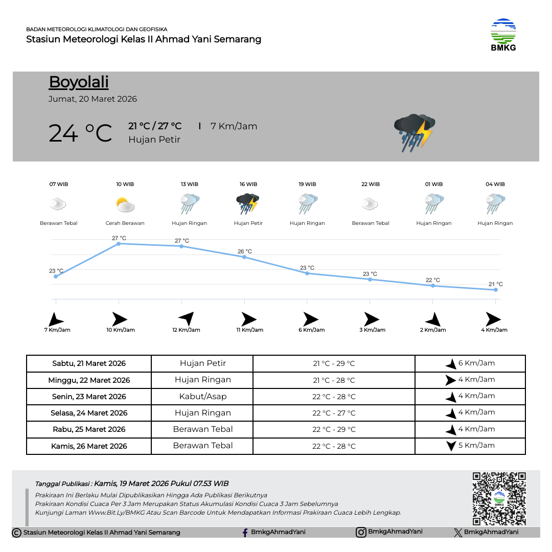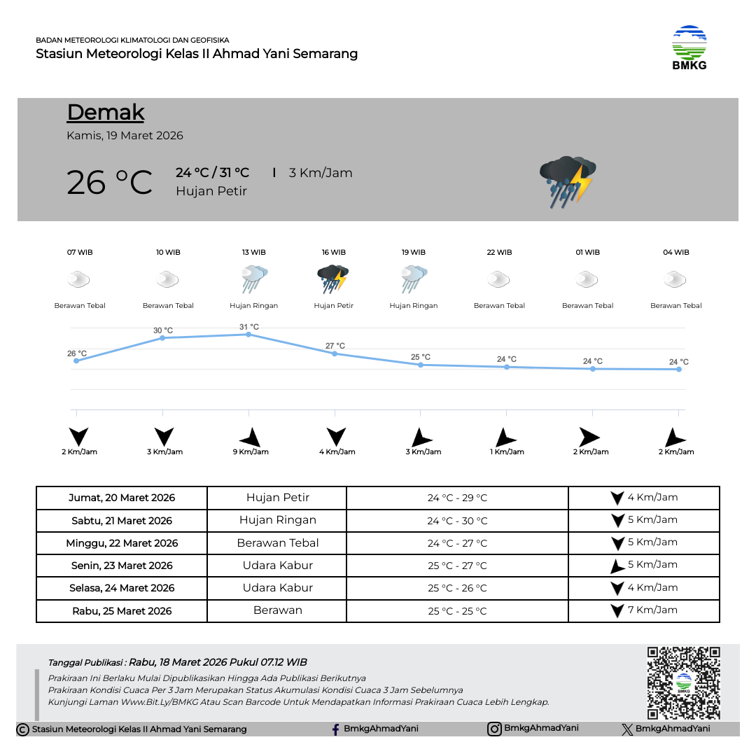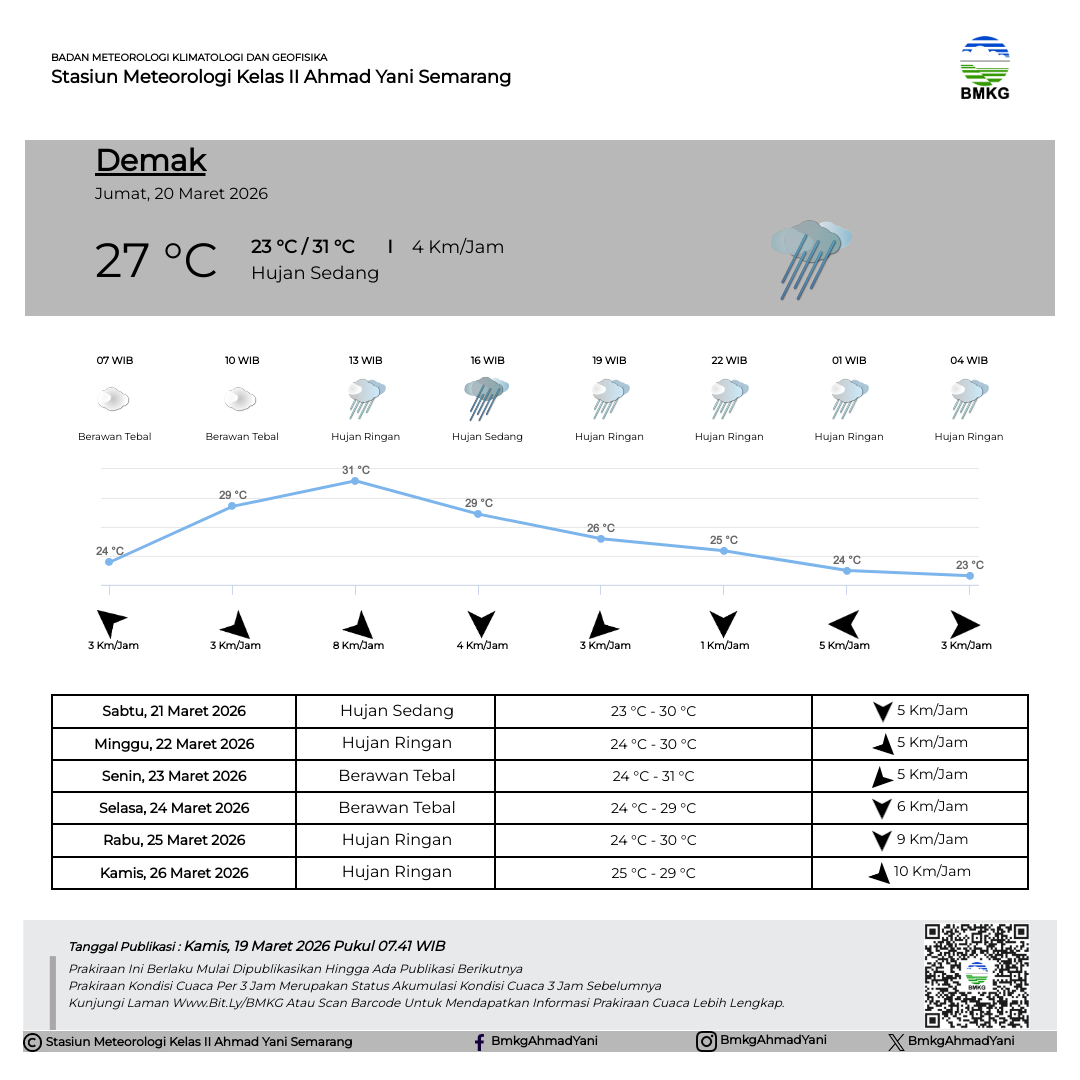 Semarang - Selasa (18/02/2025) SMP Negeri 3 Kendal melaksanakan Outing Class di Stasiun Meteorologi Kelas II Ahmad Yani Semarang. Kegiatan Outing Class ini mempunyai tujuan untuk mempermudah siswa dalam memahami materi pelajaran dengan cara belajar di luar kelas. Sebelum kegiatan dimulai, Kepala Stasiun Meteorologi Ahmad Yani Semarang secara simbolis melakukan pertukaran plakat/cinderamata dengan perwakilan dari SMP Negeri 3 Kendal.