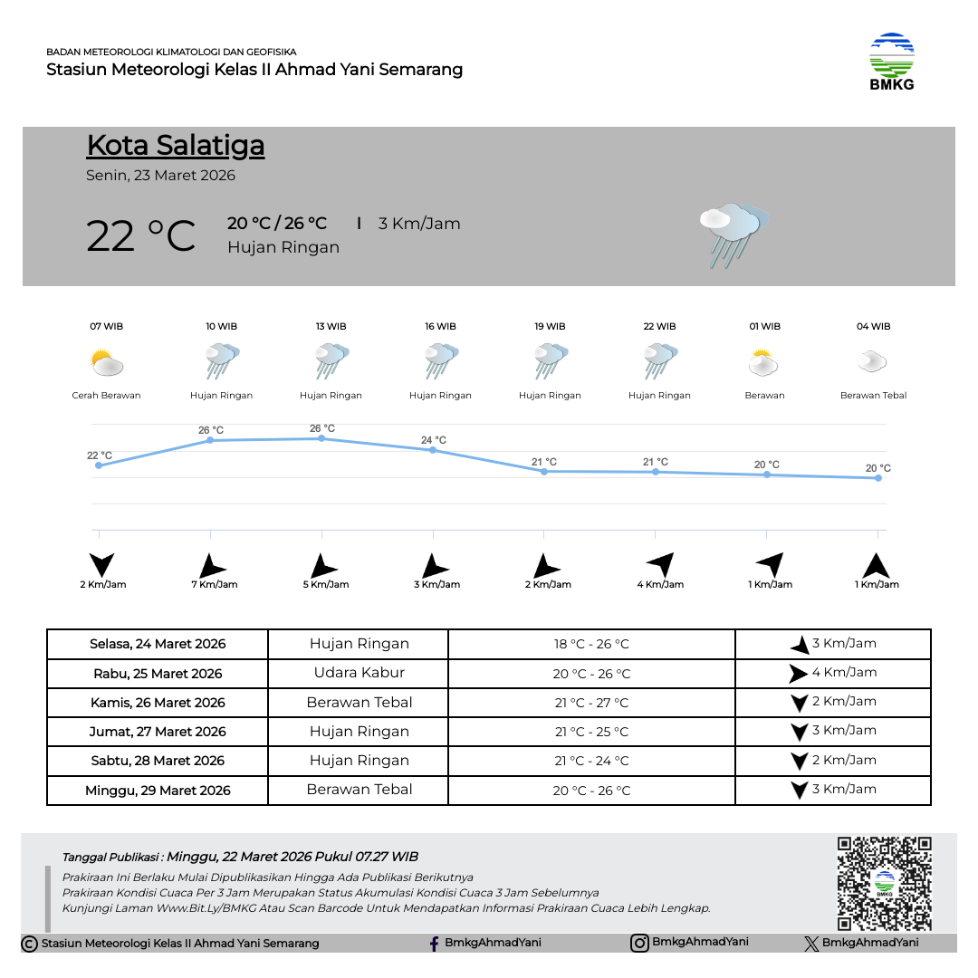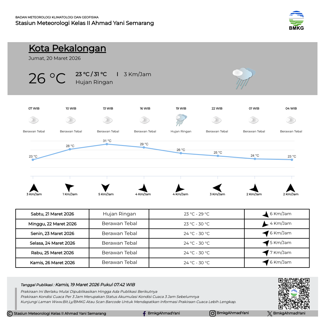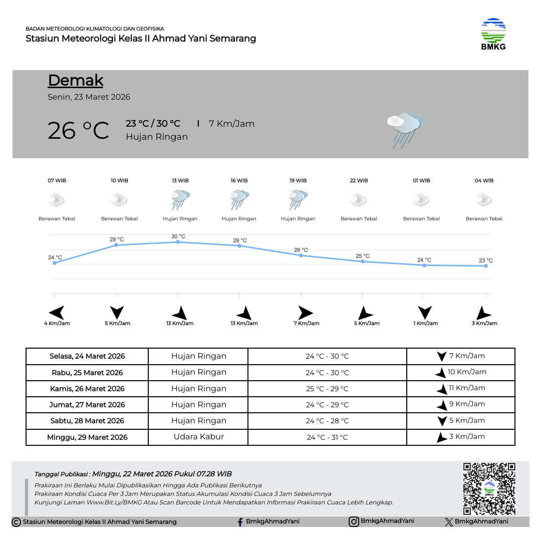 Semarang - Selasa (18/02/2025) SMP Negeri 3 Kendal melaksanakan Outing Class di Stasiun Meteorologi Kelas II Ahmad Yani Semarang. Kegiatan Outing Class ini mempunyai tujuan untuk mempermudah siswa dalam memahami materi pelajaran dengan cara belajar di luar kelas. Sebelum kegiatan dimulai, Kepala Stasiun Meteorologi Ahmad Yani Semarang secara simbolis melakukan pertukaran plakat/cinderamata dengan perwakilan dari SMP Negeri 3 Kendal.