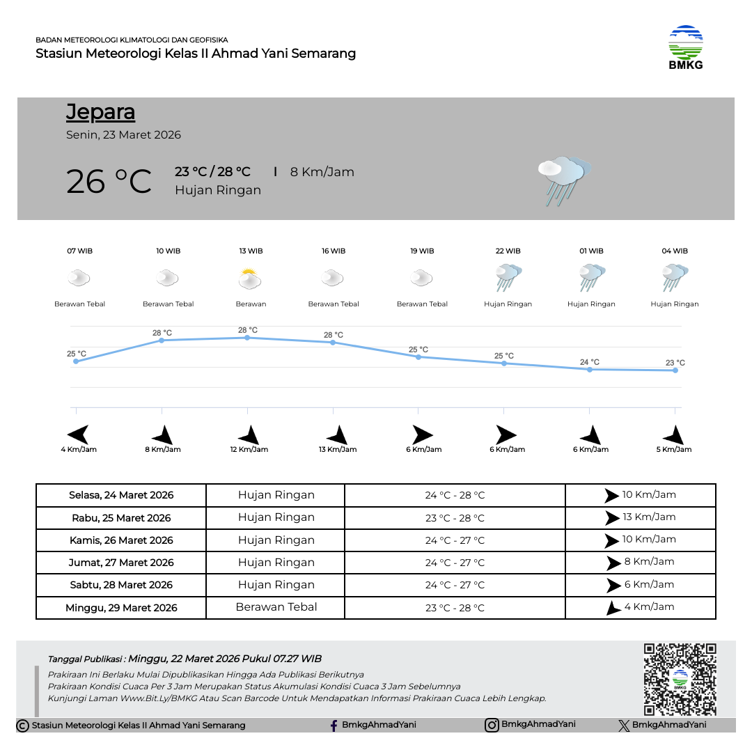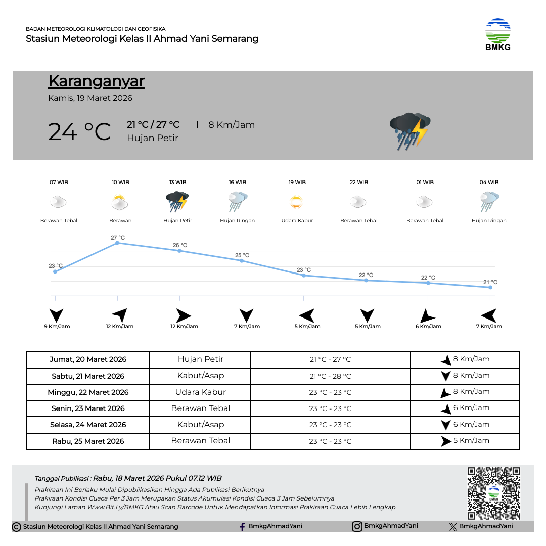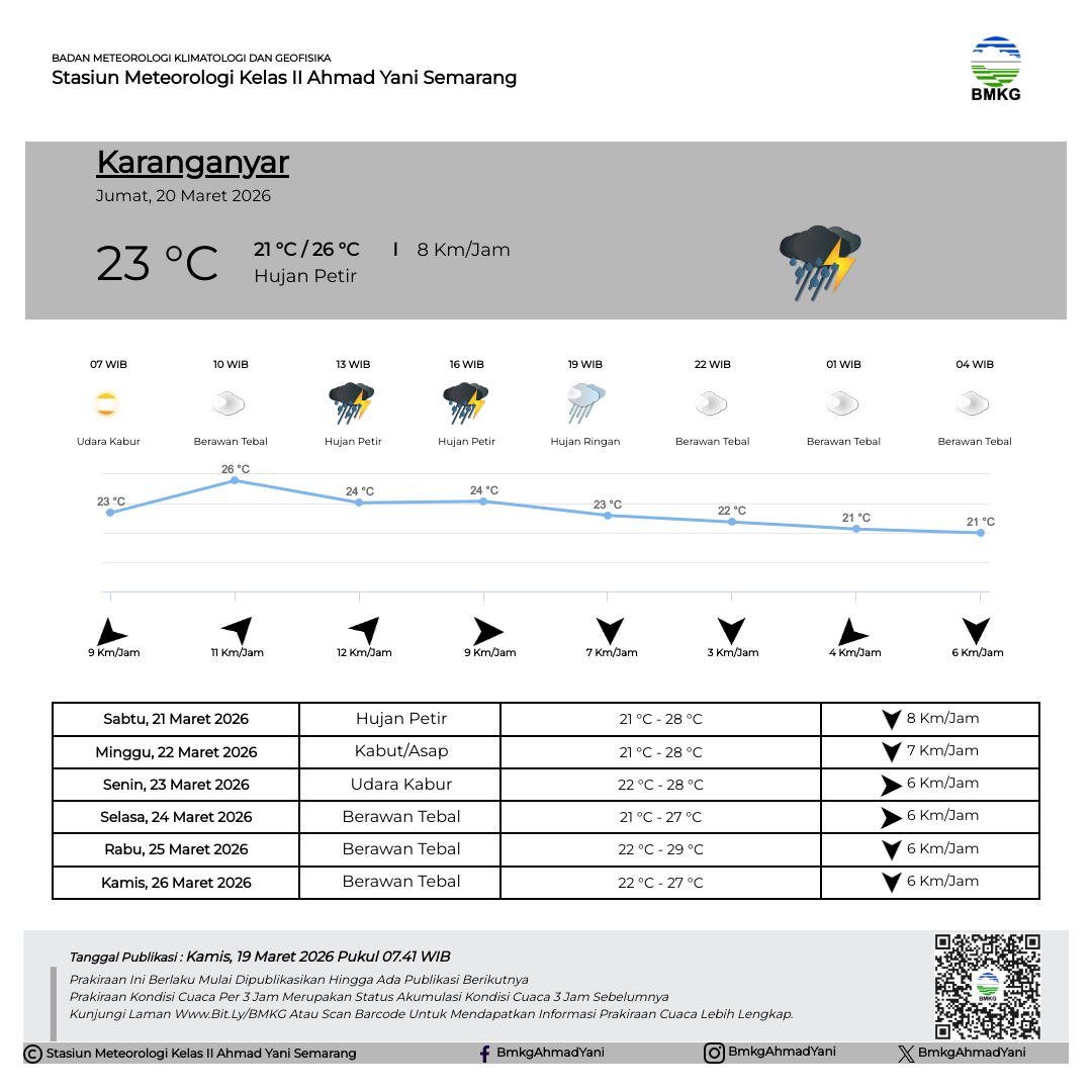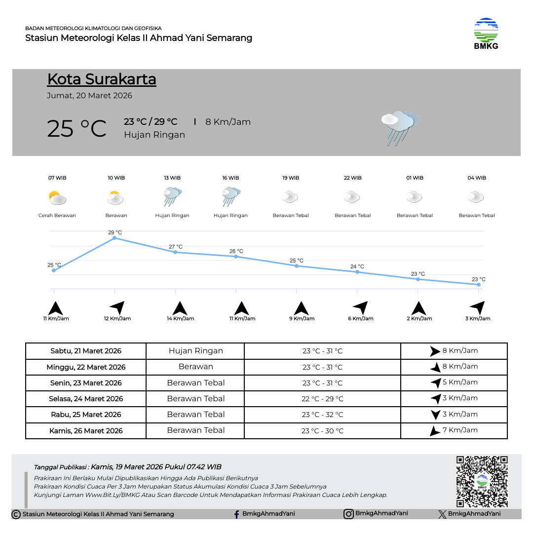 Semarang - Selasa (18/02/2025) SMP Negeri 3 Kendal melaksanakan Outing Class di Stasiun Meteorologi Kelas II Ahmad Yani Semarang. Kegiatan Outing Class ini mempunyai tujuan untuk mempermudah siswa dalam memahami materi pelajaran dengan cara belajar di luar kelas. Sebelum kegiatan dimulai, Kepala Stasiun Meteorologi Ahmad Yani Semarang secara simbolis melakukan pertukaran plakat/cinderamata dengan perwakilan dari SMP Negeri 3 Kendal.