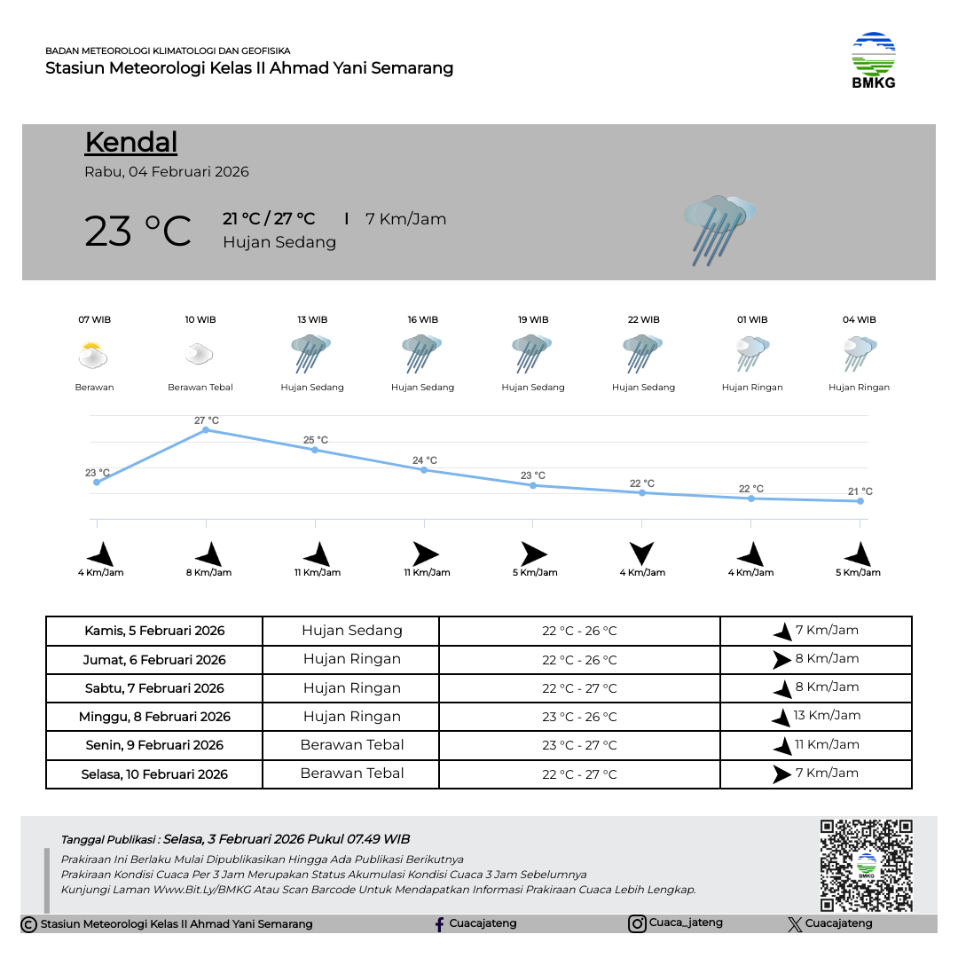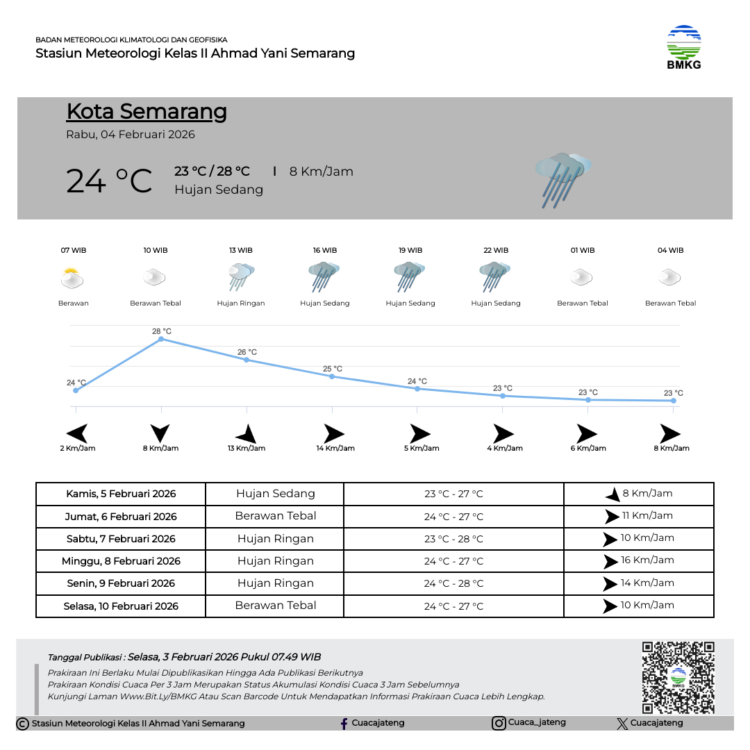 Semarang - Selasa (18/02/2025) SMP Negeri 3 Kendal melaksanakan Outing Class di Stasiun Meteorologi Kelas II Ahmad Yani Semarang. Kegiatan Outing Class ini mempunyai tujuan untuk mempermudah siswa dalam memahami materi pelajaran dengan cara belajar di luar kelas. Sebelum kegiatan dimulai, Kepala Stasiun Meteorologi Ahmad Yani Semarang secara simbolis melakukan pertukaran plakat/cinderamata dengan perwakilan dari SMP Negeri 3 Kendal.